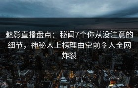 魅影直播盘点:秘闻7个你从未注意的细节,神秘人上榜理由空前令人全网炸裂 近年来,直播界风云变幻,明星...