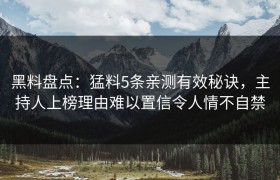 黑料盘点:猛料5条亲测有效秘诀,主持人上榜理由难以置信令人情不自禁