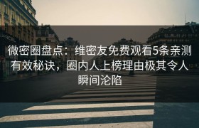 微密圈盘点:维密友免费观看5条亲测有效秘诀,圈内人上榜理由极其令人瞬间沦陷