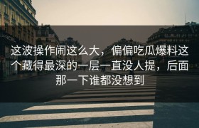 在当下社会,每一个大事件背后往往都隐藏着复杂的人情世故和难以捉摸的背后动机。这次的“这波操作”无疑是...